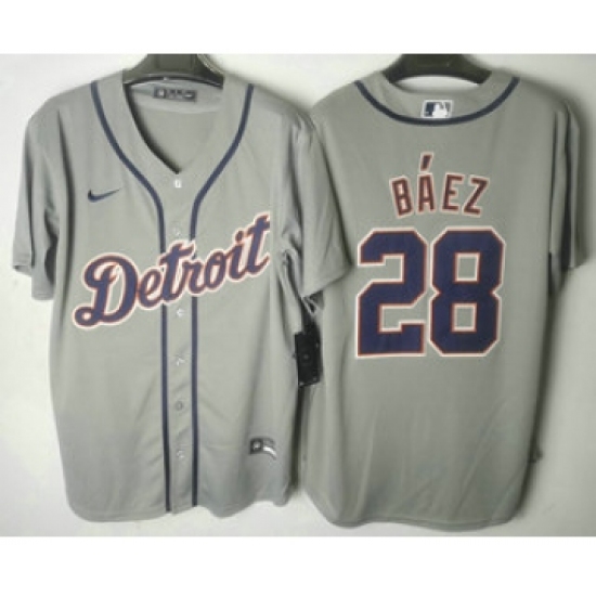 Men's Detroit Tigers #28 Javier Baez Grey Stitched Cool Base Nike Jersey