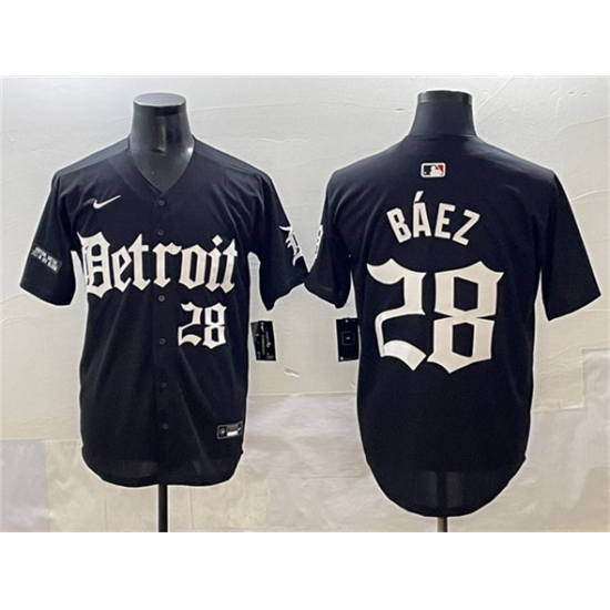 Men's Detroit Tigers #28 Javier Báez Black 'Motor Gothic Edition' Vapor Premier Limited Stitched Baseball Jersey