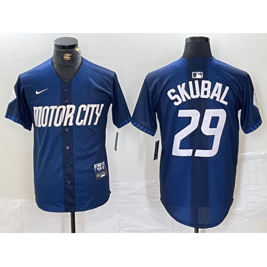 Men's Detroit Tigers #29 Tarik Skubal Number 2024 Navy City Connect Cool Base Limited Stitched Jersey