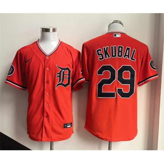 Men's Detroit Tigers #29 Tarik Skubal Orange 2026 Alternate Stitched Baseball Jersey