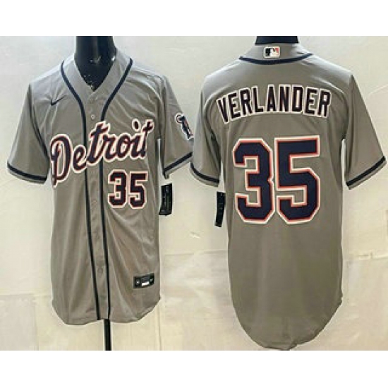 Men's Detroit Tigers #35 Justin Verlander Grey Number Cool Base Jersey