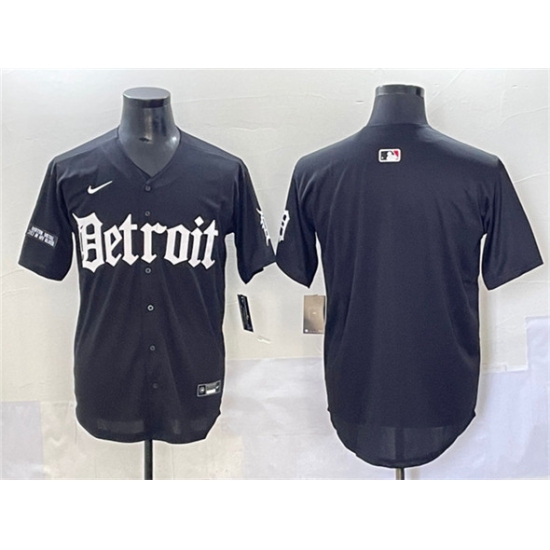 Men's Detroit Tigers Blank Black With Cool Base Stitched Baseball Jersey