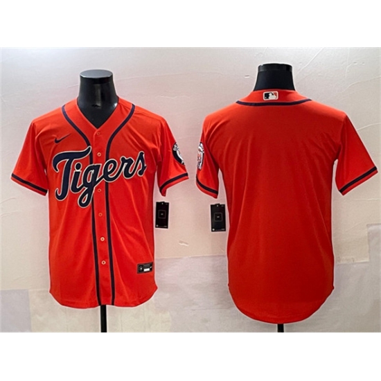 Men's Detroit Tigers Blank Orange With Cool Base Stitched Baseball Jersey