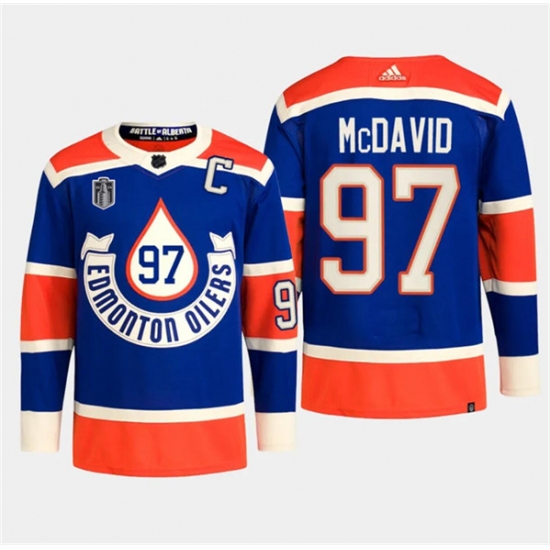 >Men's Edmonton Oilers #97 Connor McDavid Royal 2024 Stanley Cup Final Heritage Classic Primegreen Stitched Jersey