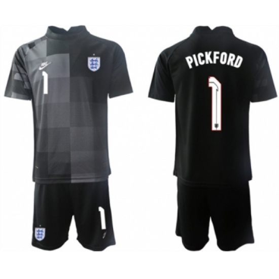>Men's England #1 Pickford Black Goalkeeper Soccer Jersey Suit