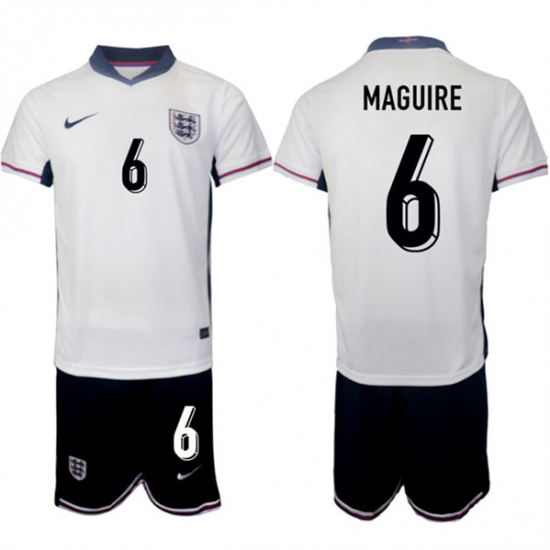 >Men's England #6 Harry Maguire 2024-25 White Home Soccer Jersey Suit