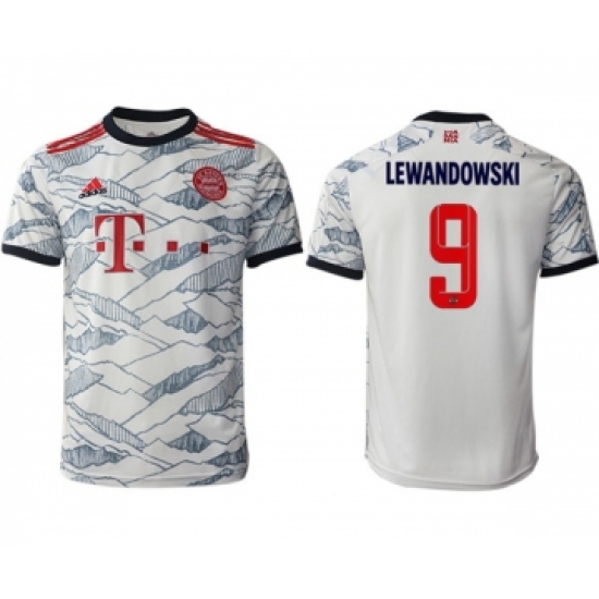 Men's FC Bayern München #9 Robert Lewandowski White Away Soccer Jersey