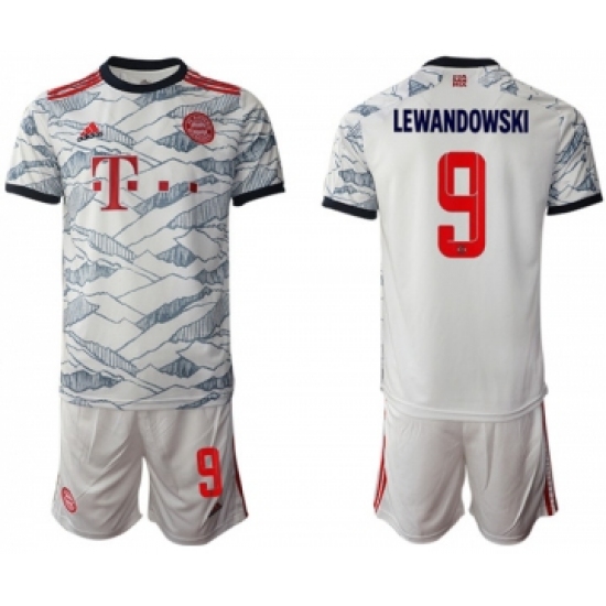 >Men's FC Bayern München #9 Robert Lewandowski White Jersey with Shorts