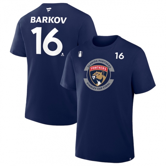 Men's Florida Panthers #16 Aleksander Barkov Navy 2025 Stanley Cup Final Pro Name & Number T-Shirt