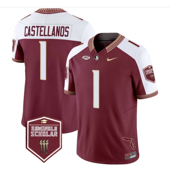 >Men's Florida State Seminoles #1 Castellanos Red White Limited NCAA Jersey