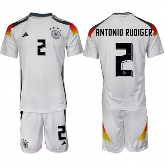 Men's Germany #2 Antonio Rüdiger White 2024-25 Home Soccer Jersey Suit