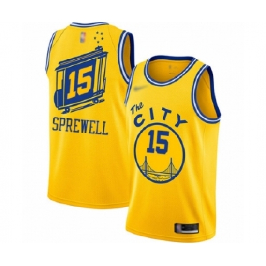 Youth Golden State Warriors #15 Latrell Sprewell Swingman Gold 2019 Basketball Finals Bound Basketball Jersey - City Edition
