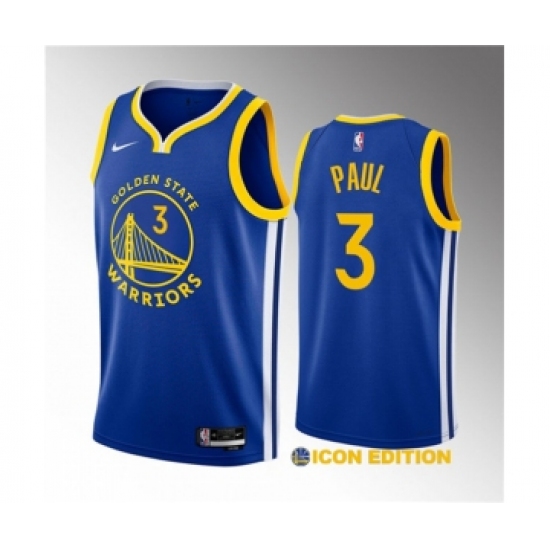 Men's Golden State Warriors #3 Chris Paul Blue Icon Edition Stitched Basketball Jersey