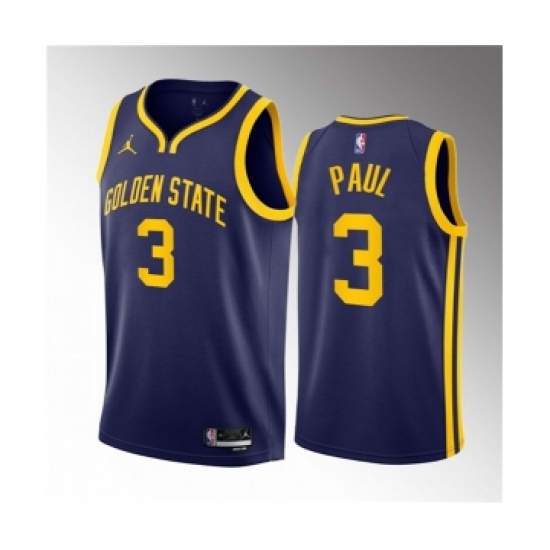 >Men's Golden State Warriors #3 Chris Paul Navy Statement Edition Stitched Basketball Jersey