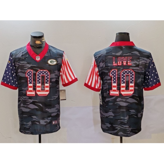 Men's Green Bay Packers #10 Jordan Love Camo USA Flag Limited Stitched Football Jersey