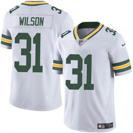 >Men's Green Bay Packers #31 Emanuel Wilson White Vapor Limited Football Stitched Jersey