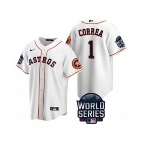 Men's Houston Astros #1 Carlos Correa 2021 White World Series Cool Base Stitched Baseball Jersey