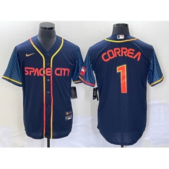 Men's Houston Astros #1 Carlos Correa 2022 Navy Blue City Connect Cool Base Stitched Jersey