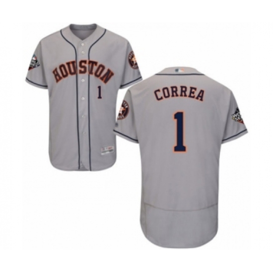 Men's Houston Astros #1 Carlos Correa Grey Road Flex Base Authentic Collection 2019 World Series Bound Baseball Jersey