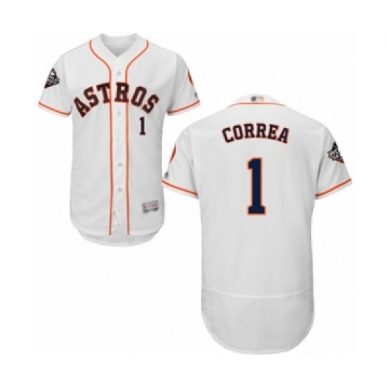 Men's Houston Astros #1 Carlos Correa White Home Flex Base Authentic Collection 2019 World Series Bound Baseball Jersey
