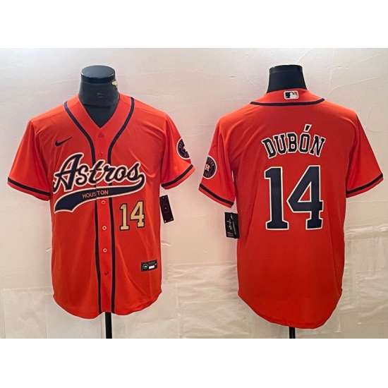 >Men's Houston Astros #14 Mauricio Dubon Number Orange Cool Base Stitched Baseball Jersey