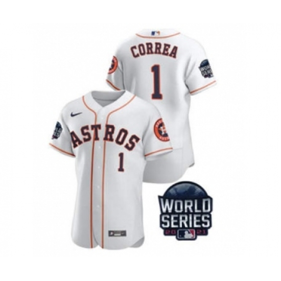 Men's Houston Astros #1 Carlos Correa 2021 Gray World Series Flex Base Stitched Baseball Jersey