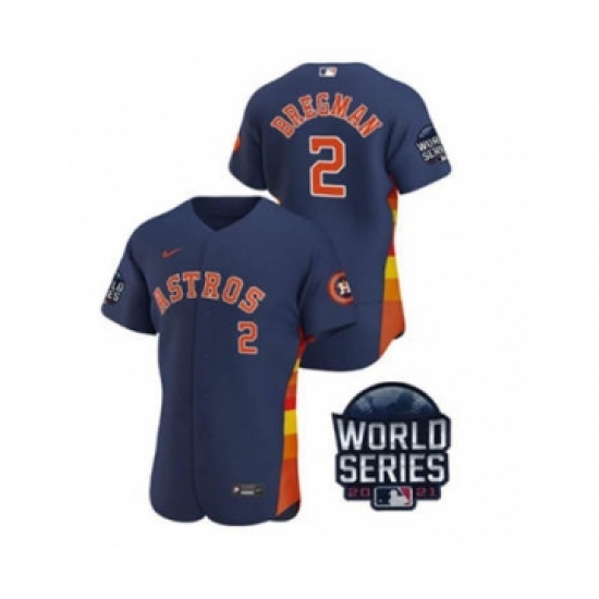 Men's Houston Astros #2 Alex Bregman 2021 Navy World Series Flex Base Stitched Baseball Jersey