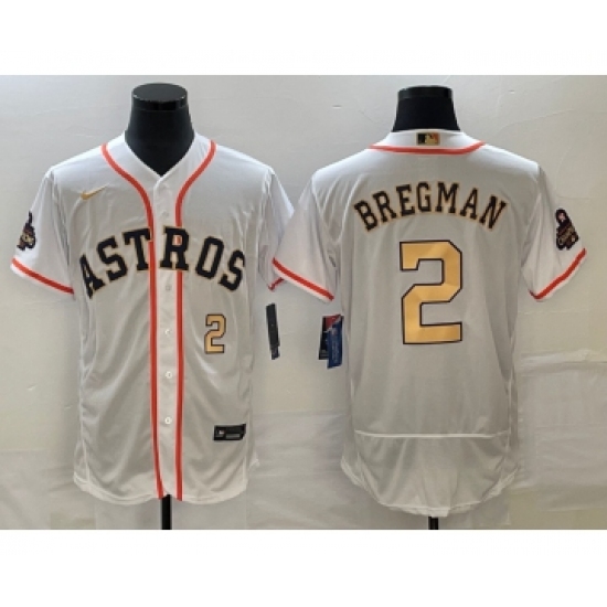 Men's Houston Astros #2 Alex Bregman Number 2023 White Gold World Serise Champions Flex Base Stitched Jersey1