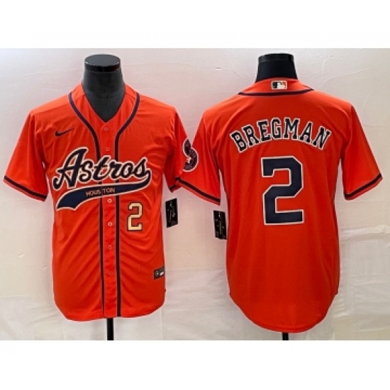 Men's Houston Astros #2 Alex Bregman Number Orange Cool Base Stitched Baseball Jersey