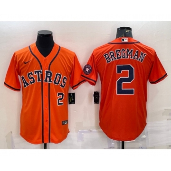 Men's Houston Astros #2 Alex Bregman Number Orange With Patch Stitched MLB Cool Base Nike Jersey