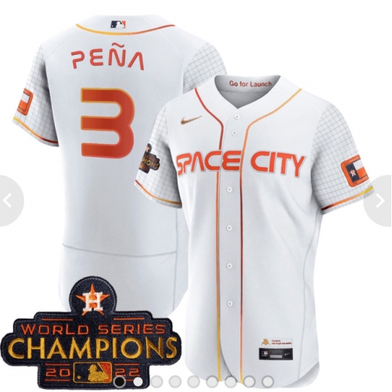 >Men's Houston Astros #3 Jeremy Pena 2023 White Serise Champions Base Stitched Jerseys