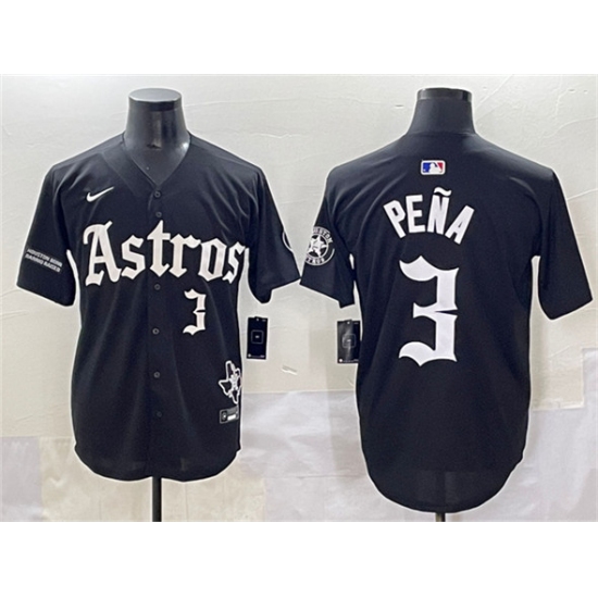 Men's Houston Astros #3 Jeremy Pena Black Gothic 'Houston Born Barrio Raised' Limited Stitched Baseball Jersey
