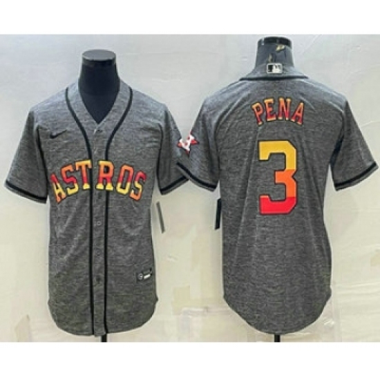 >Men's Houston Astros #3 Jeremy Pena Grey Gridiron With Patch Cool Base Stitched Baseball Jersey