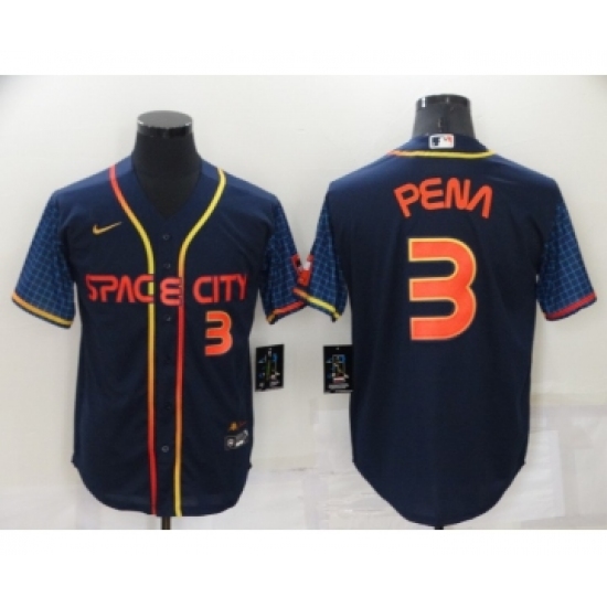 Men's Houston Astros #3 Jeremy Pena Number 2022 Navy Blue City Connect Cool Base Stitched Jersey