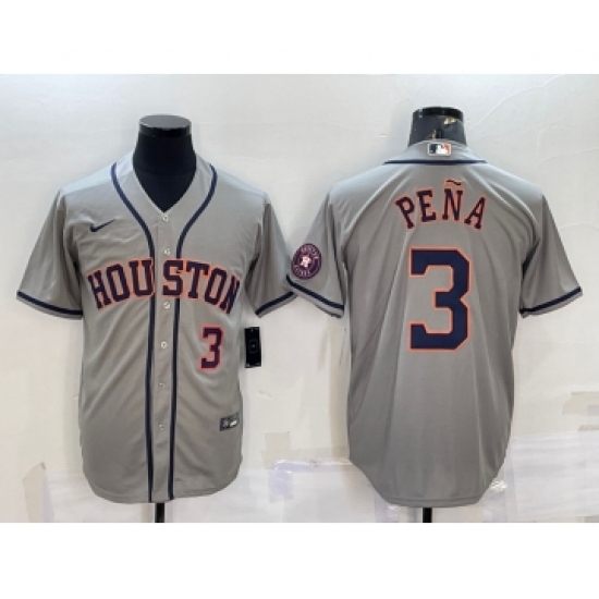 >Men's Houston Astros #3 Jeremy Pena Number Grey With Patch Stitched MLB Cool Base Nike Jersey