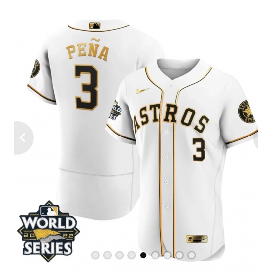 Men's Houston Astros #3 Jeremy Pena Number White 2022 World Series patches Jersey
