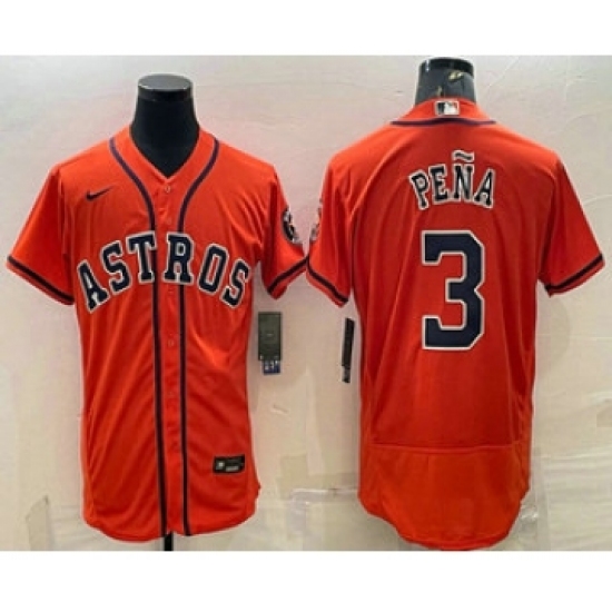 >Men's Houston Astros #3 Jeremy Pena Orange Stitched MLB Flex Base Nike Jersey
