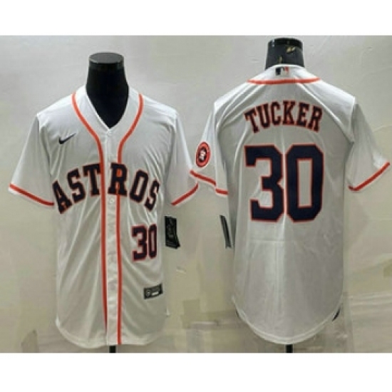 Men's Houston Astros #30 Kyle Tucker Number White With Patch Stitched MLB Cool Base Nike Jersey