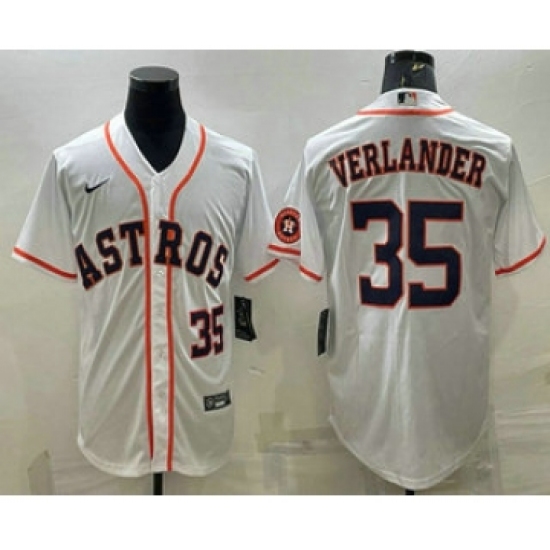 Men's Houston Astros #35 Justin Verlander Number White With Patch Stitched MLB Cool Base Nike Jersey