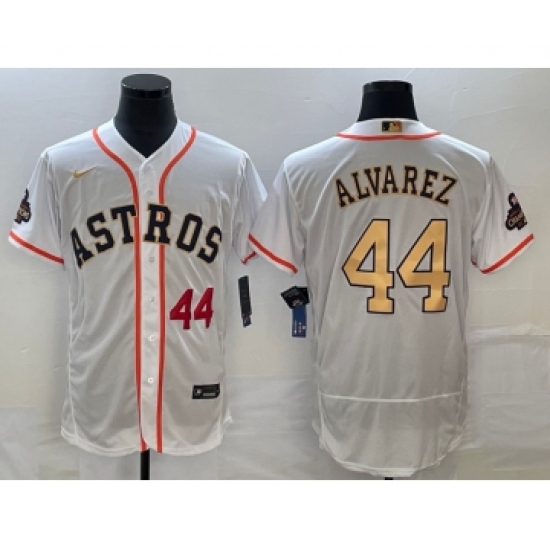 Men's Houston Astros #44 Yordan Alvarez Number 2023 White Gold World Serise Champions Flex Base Stitched Jersey2