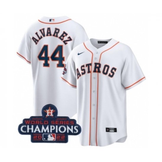 Men's Houston Astros #44 Yordan Alvarez White 2022 World Series Champions Home Stitched Baseball Jersey