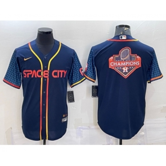 Men's Houston Astros Navy Blue City Connect Champions Big Logo With Patch Stitched MLB Cool Base Nike Jersey