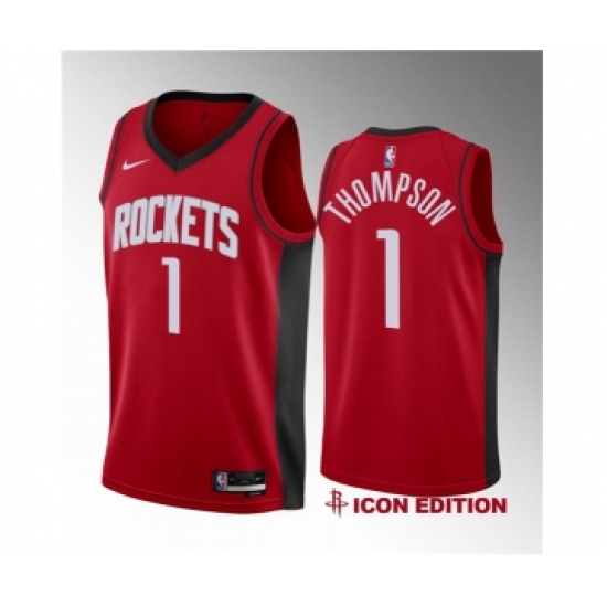 Men's Houston Rockets #1 Amen Thompson Red 2023 Draft Swingman Icon Edition Stitched Basketball Jersey