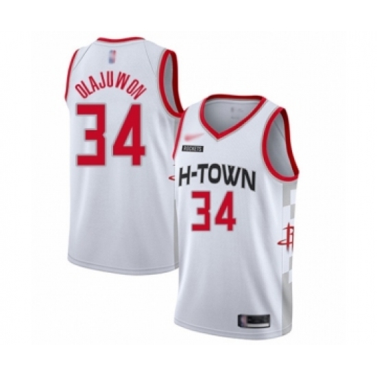 >Men's Houston Rockets #34 Hakeem Olajuwon Swingman White Basketball Jersey - 2019 20 City Edition