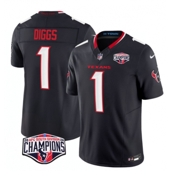 Men's Houston Texans #1 Stefon Diggs Navy F.U.S.E. 2024 AFC South Division Champions Vapor Limited Stitched Football Jersey