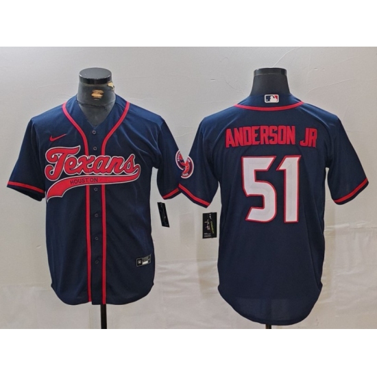 Men's Houston Texans #51 Will Anderson Jr Navy With Cool Base Stitched Baseball Jersey