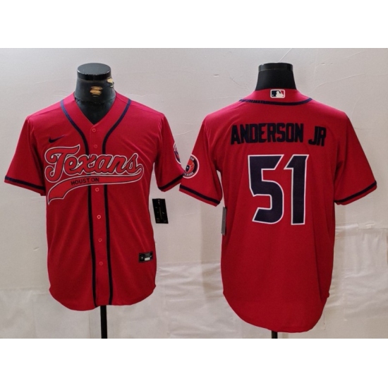 Men's Houston Texans #51 Will Anderson Jr Red With Cool Base Stitched Baseball Jersey
