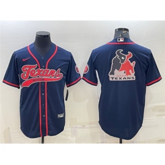 Men's Houston Texans Navy Team Big Logo With Patch Cool Base Stitched Baseball Jersey