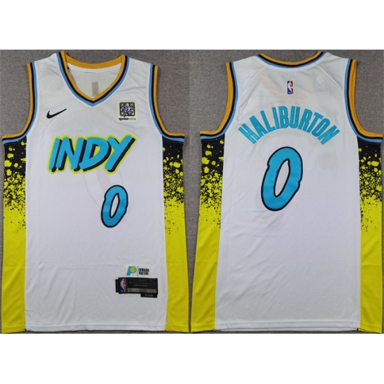 Men's Indiana Pacers #0 Tyrese Haliburton White 2024-25 City Edition Stitched Basketball Jersey