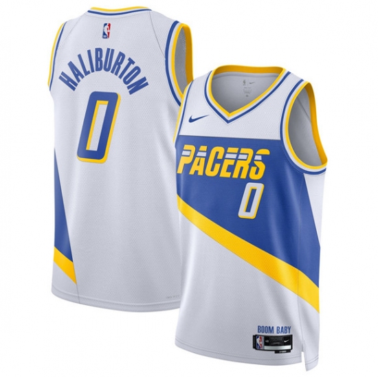 Men's Indiana Pacers #0 Tyrese Haliburton White 2025 Finals Association Edition Stitched Basketball Jersey